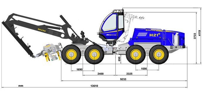 Lielās klases harvesters Rottne H21D  ir aprīkots ar  8 (8WD) vai 6 (6WD) riteņu piedziņu un nozīmīgiem enerģijas resursiem. Šasija, manipulators un darba galva ir projektēti tā, lai H21D tiktu galā ar darbu mēnesi pēc mēneša, nodrošinot nemainīgu rentabilitātes līmeni.