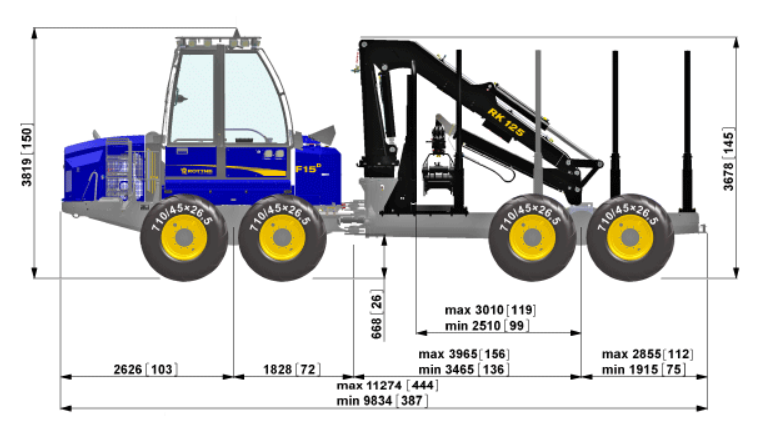 ROTTNE F15DVidējās klases forvarders ar 15 tonnu celtspēju un kravas šķērslaukumu 5,7m2 |