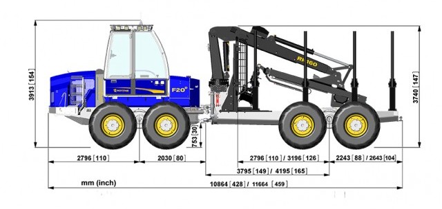 ROTTNE F20DLielās klases forvarders ar 20 tonnu celtspēju un kravas šķērslaukumu 8,4m2 |