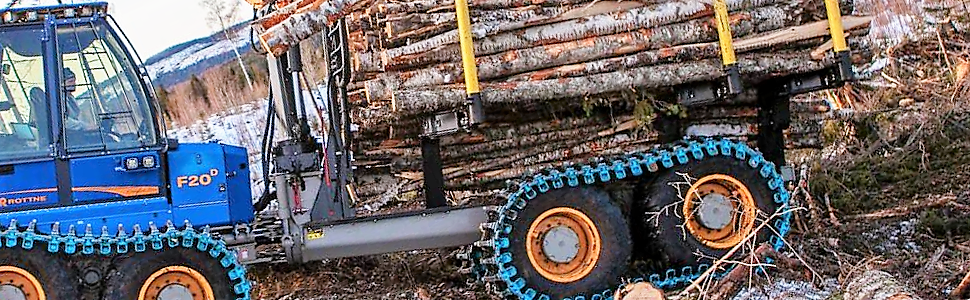 Ar tandēma balansēšanas sistēmu un lielajām riepām (750/55 x 26,5 vai 710/50x30,5) Rottne F20D nodrošina izcilu nestspēju un komfortablu braukšanu.