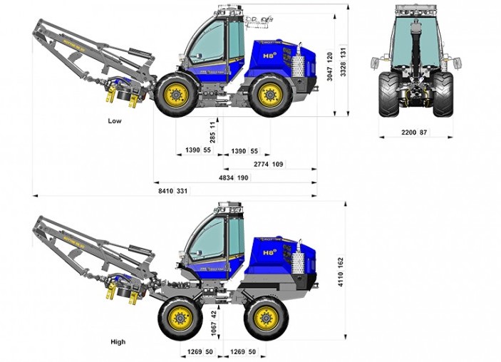 ROTTNE H8DHarvesters krājas kopšanas cirtēm ar maināmu klīrensu |